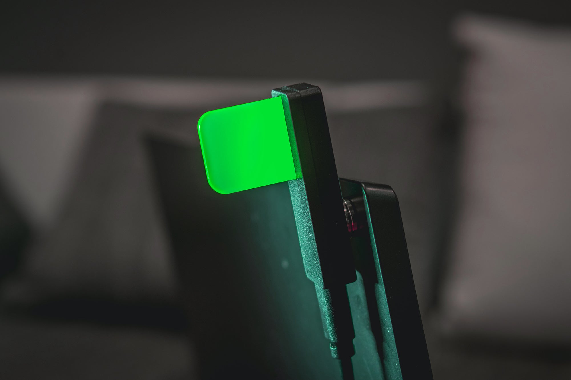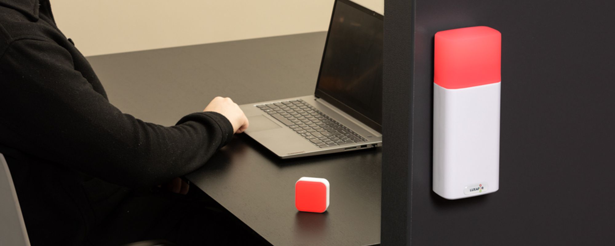 Tryck på knappen – ljuset växlar. Grönt när du är ledig, rött när du vill arbeta ostört. Alla förstår det, så du får färre avbrott och mer fokus.
