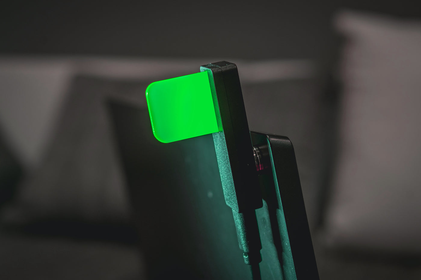 Luxafor SWITCH PRO 2 visar om t.ex. arbetsplatsen eller mötesrummet är ledigt, upp till 25 meter från enheten.