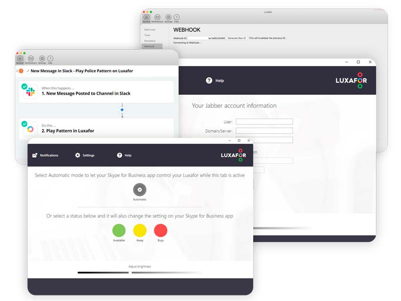 ✓ Använd Zapier för att koppla Luxafor med Amazon, Facebook, Twitter, Instagram, Zoho, Slack och mer än 1500 andra appar för personliga och unika aviseringar.