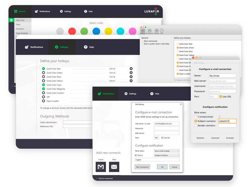 ✓ Ställ in Luxafor BLUETOOTH för att blinka som du vill, t.ex. när det finns oläst e-post, eller när du får ett e-postmeddelande med ett visst ord i. På så sätt blir du bara störd om det verkligen är viktigt.